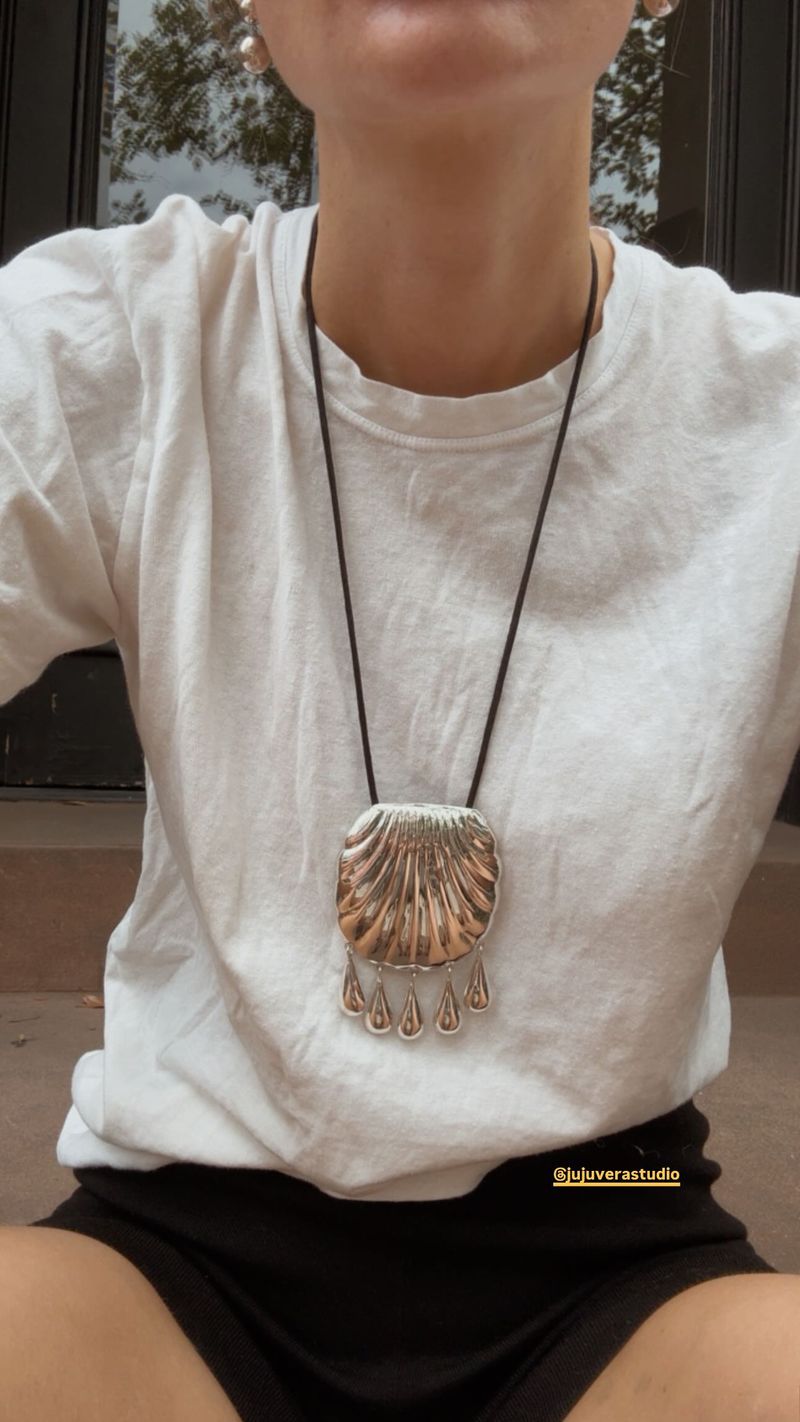It's not the material -- most necklaces are silver or gold. It's not the chain -- most hang on a very simple, casual cord. The oversized nature of the pendant, I came to realize, is what distinguished this accessory from others. Layers of necklaces had their moment in time, but it seems the jumbo, singular, pendant is 2025's jewelry icon.